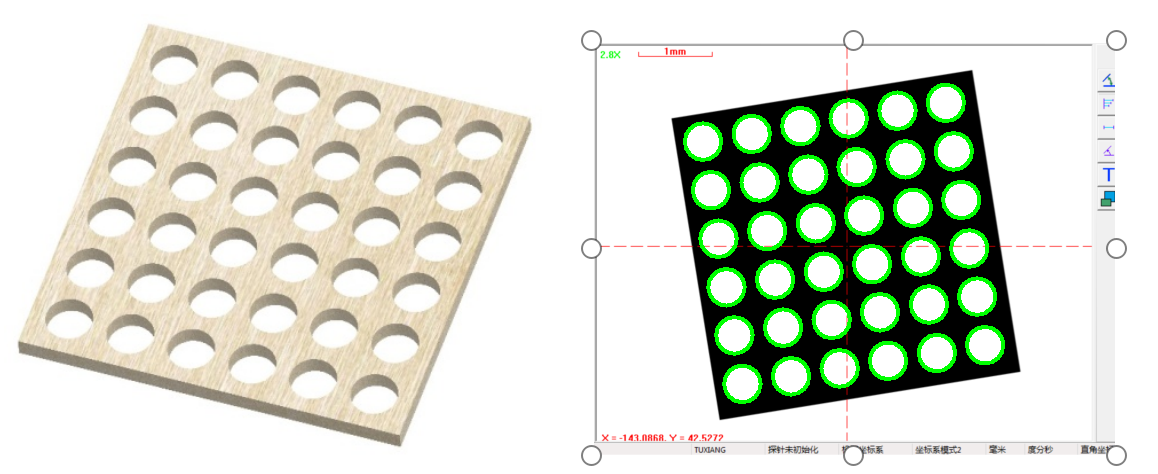 可以直接用CAD软件绘制尺寸图,导入软件后即可实现自动测量,无需采点寻边。非常方便对形状复杂或不规则图形进行坐标测量和轮廓对比测量。