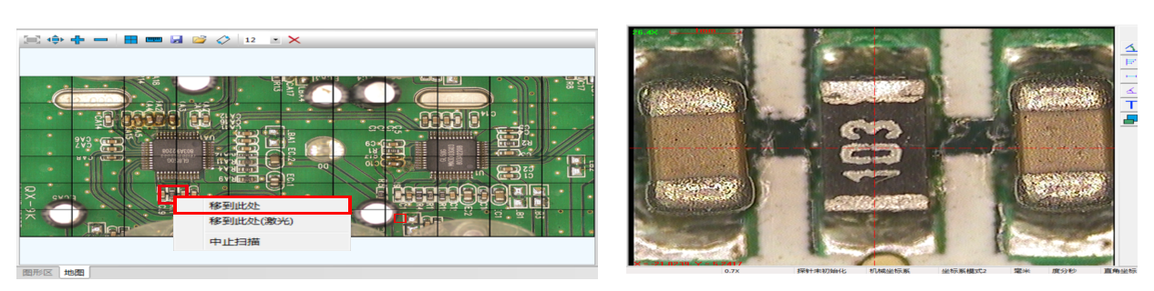可用软件功能控制机台将工件整体扫描拼合成为一张图片,甚至直接导入拍照获得的工件图片,并以该图片像素点为单位