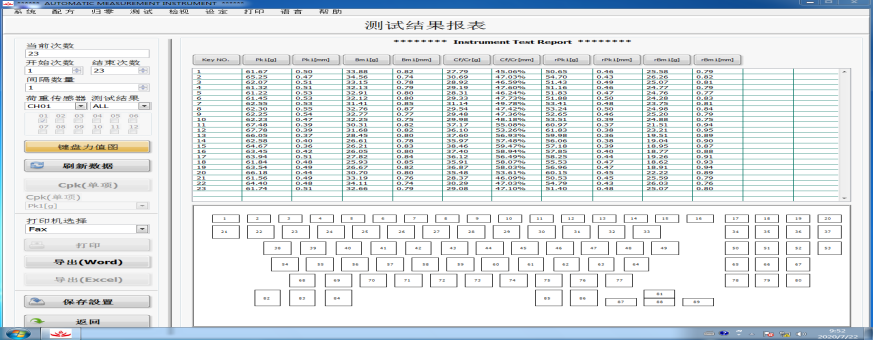 导出数据新增一项键盘力值,可导出键盘矩阵图,并在相对应的键位显示测试荷重数据,