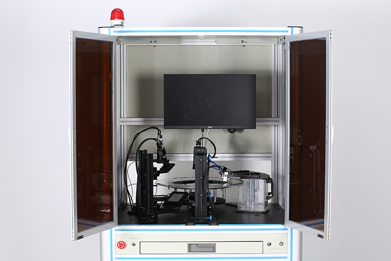 主要配备数位高像素专业摄影机、高解析度镜头、工业用计算机、液晶显示器以及由本公司所开发影像筛检程式系统。由伺服电机、主轴、玻璃盘及相关机械配件组成,实现中心系统平稳地作间歇性转动进行工件的检测。